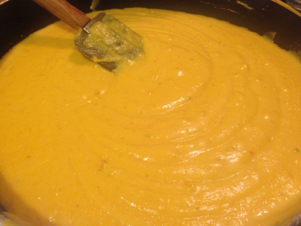 – Add flour to the liquid spice/sugar mixture and stir together with a wooden spoon.